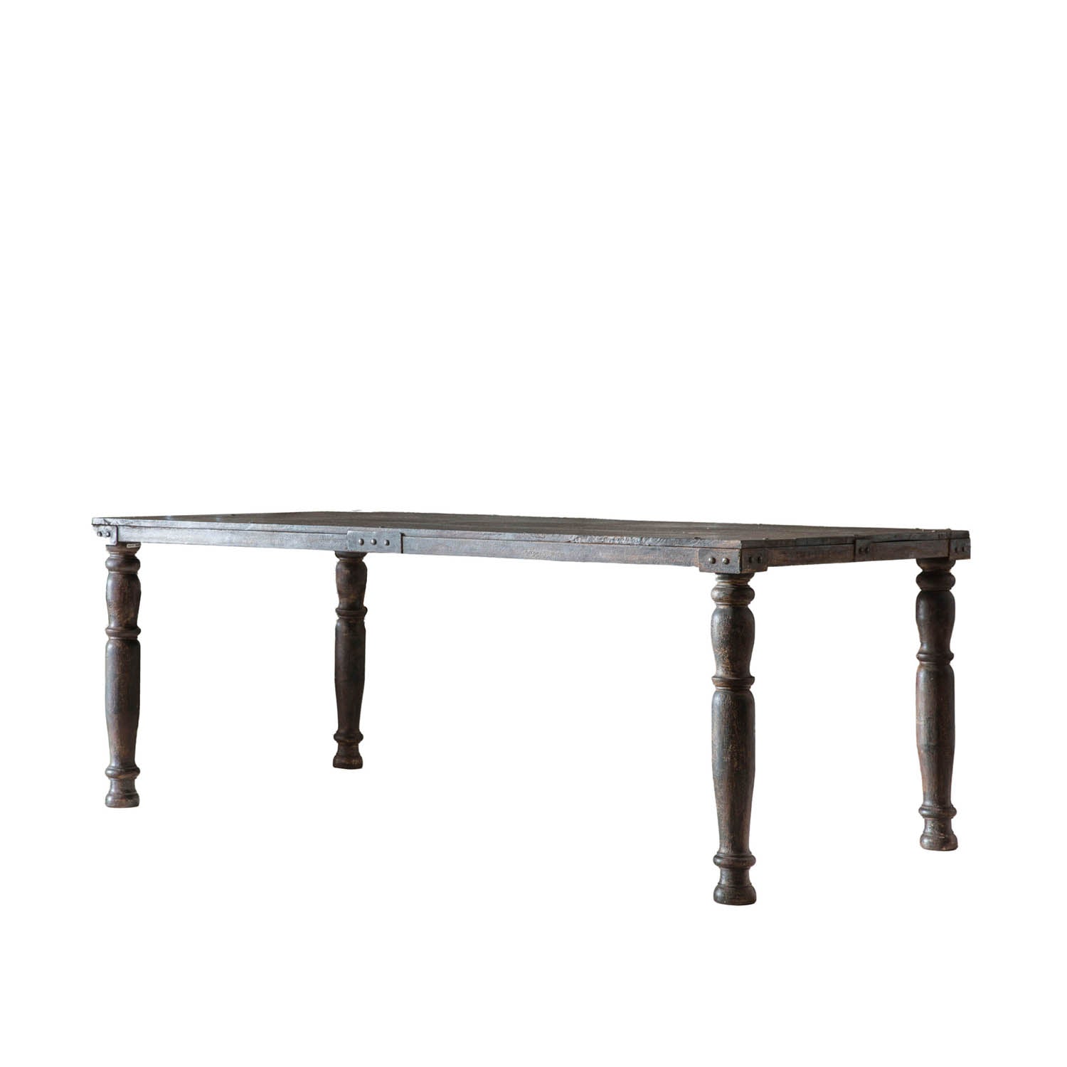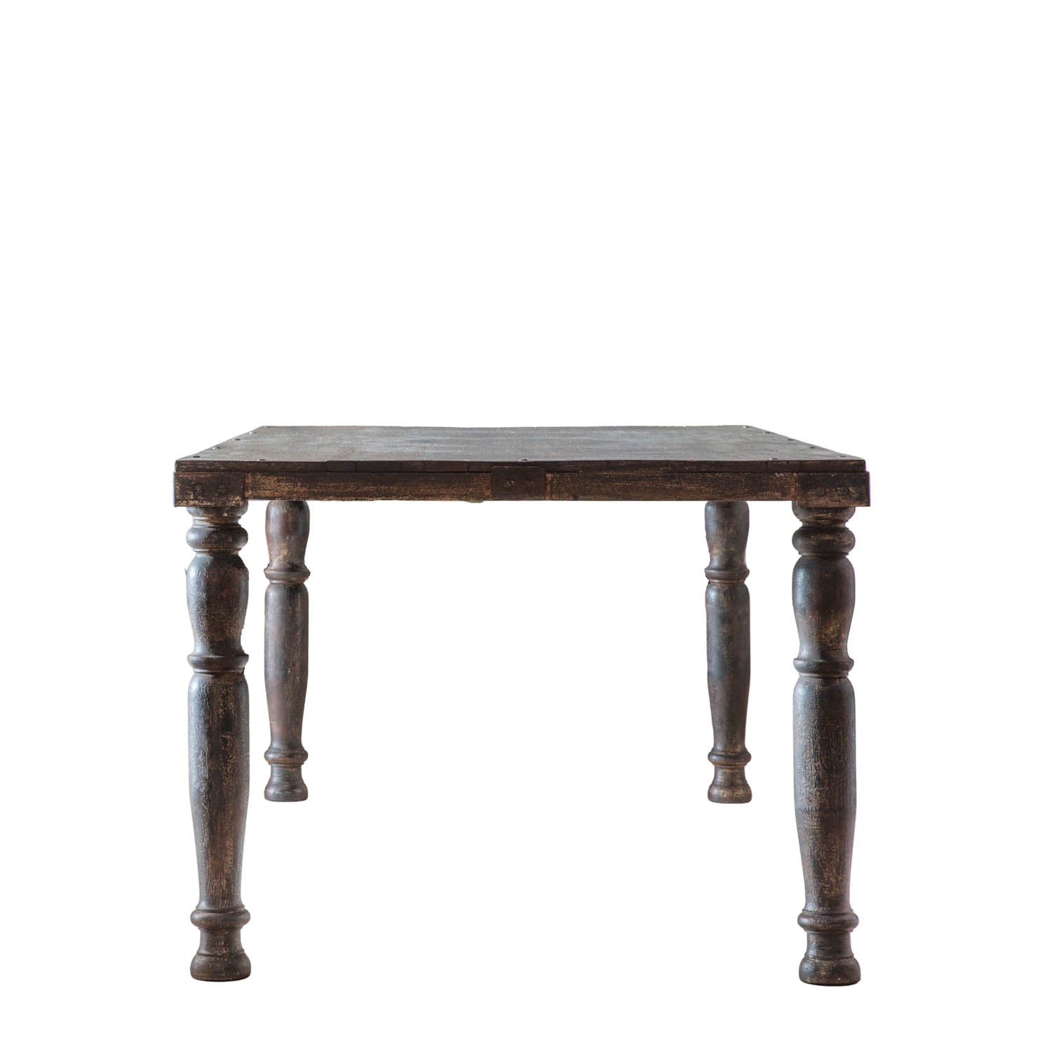 Add a shabby chic touch to a room with the Sagar Dining Table. Crafted from mango wood, with turned legs, and metal detailing on the top corners and sides, the table wood look at home in a range of interiors, from rustic farmhouse-style kitchens to orangeries and conservatories.